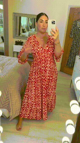 2024 New Bohemian Casual Print V-neck Long Dress (Buy 2 Free Shipping)